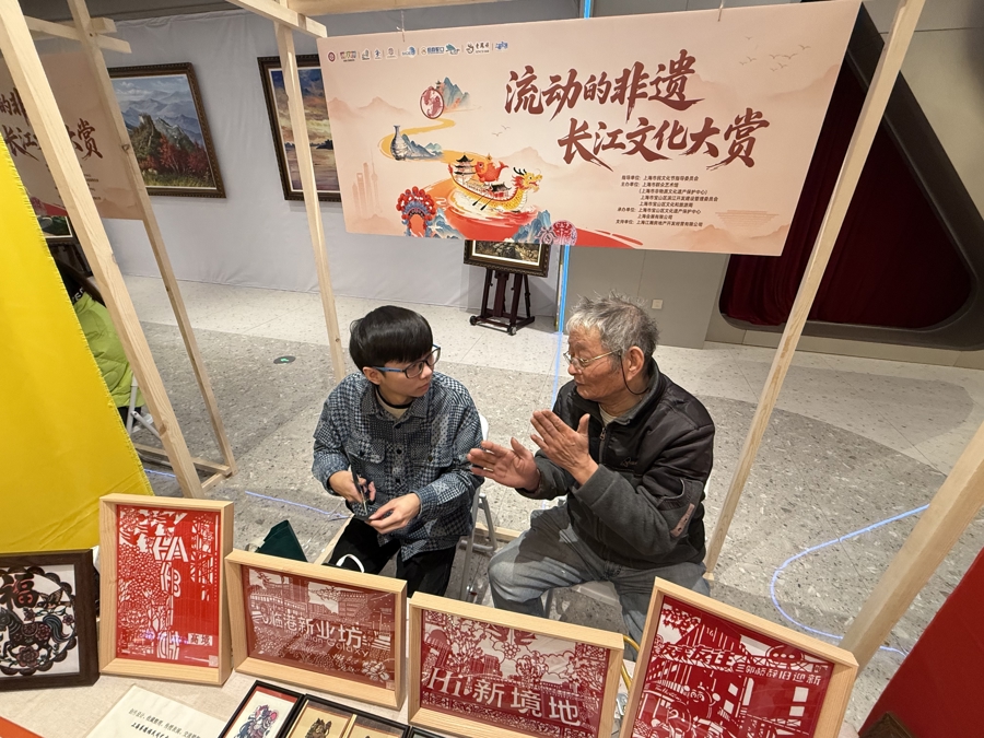 作为“上海新年第一游”宝山主会场活动的组成部分,“流动的非遗•长江文化大赏”12月24日率先在宝山滨江的上海·海上世界拉开序幕。在上海市非物质文化遗产保护中心的牵头组织下,以上海为主的长江流域非遗特色项目汇聚商圈四楼,引得市民驻足观赏、参与互动。